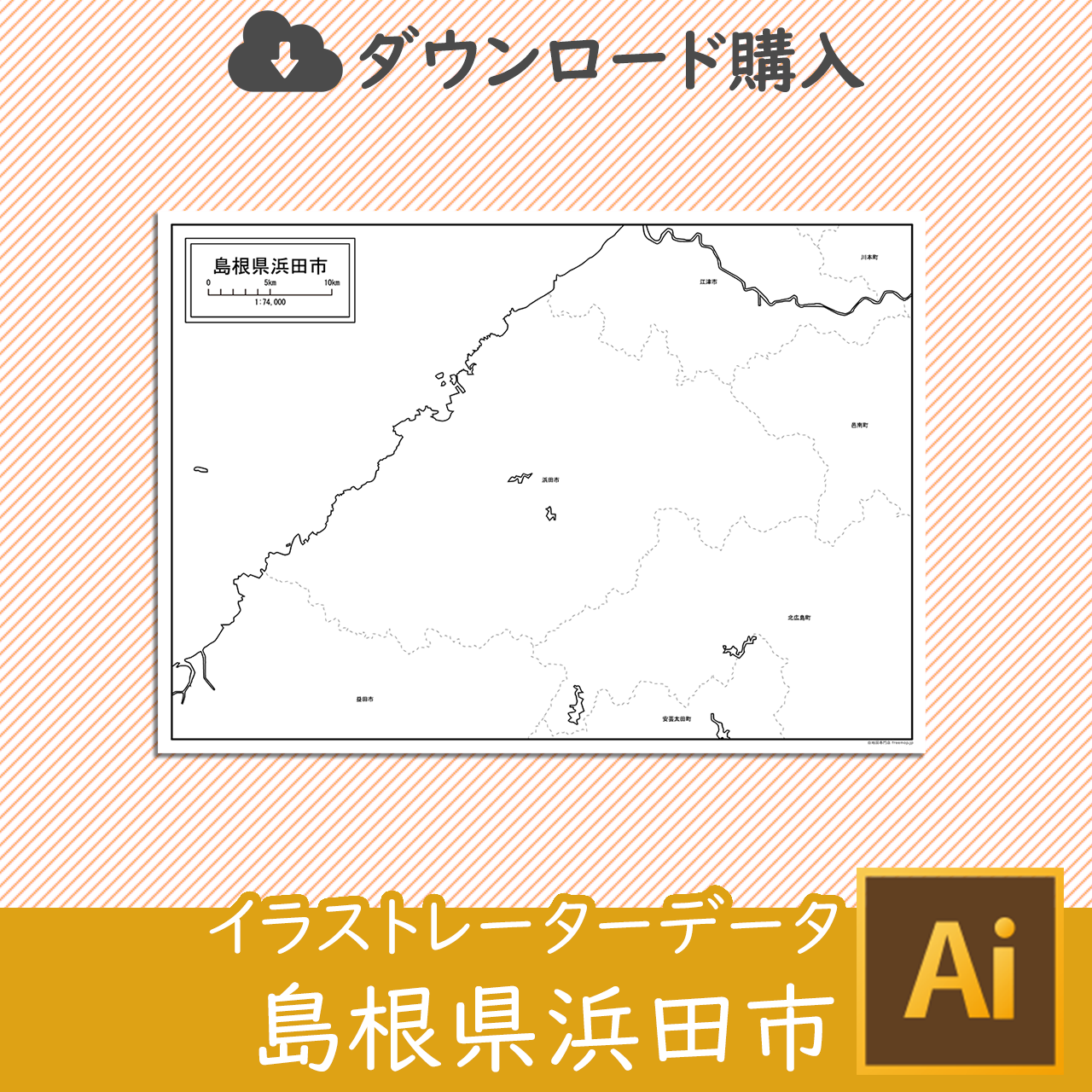 浜田市の白地図